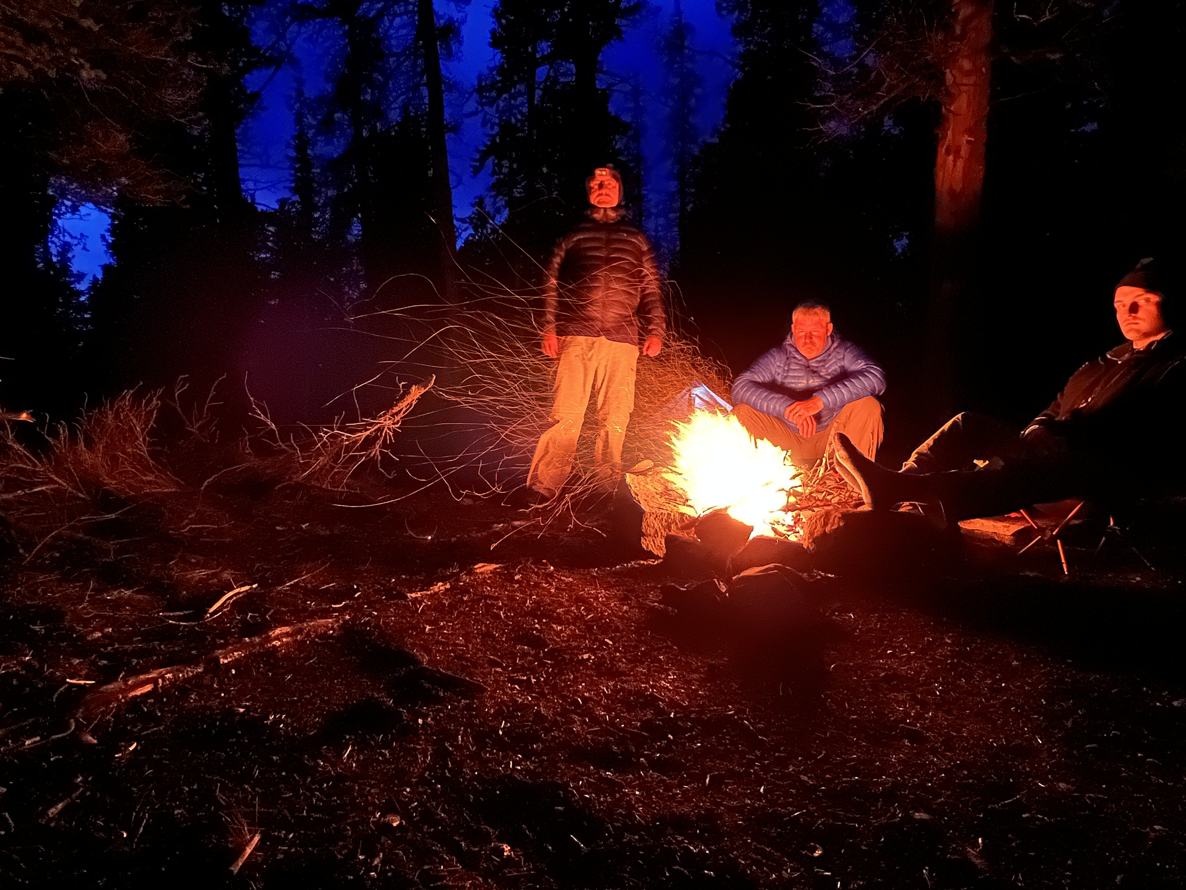 As we climbed the switchbacks to the top of North Pole Pass, the clouds parted and a rainbow appeared! It was magical how the evening sun turned the mountian side gold and the rainbow, a full one, stood out for us to enjoy! We a treat after having to shelter from thunder and lightning! We continued up and eventually hit the High Uintas Wilderness Boundary which was the top of the pass! We took some photos then moved towards the west side of the pass, where it ovelooks Fox Lake, our home for the first night. As we descended, we found this area very boggy with some standing water after we got off the pass. We eventually right at dusk found a spot and set up camp. It stayed clear enough for us to get a fire going, and make dinner. After dinner it came in and started raining and we all turned in.